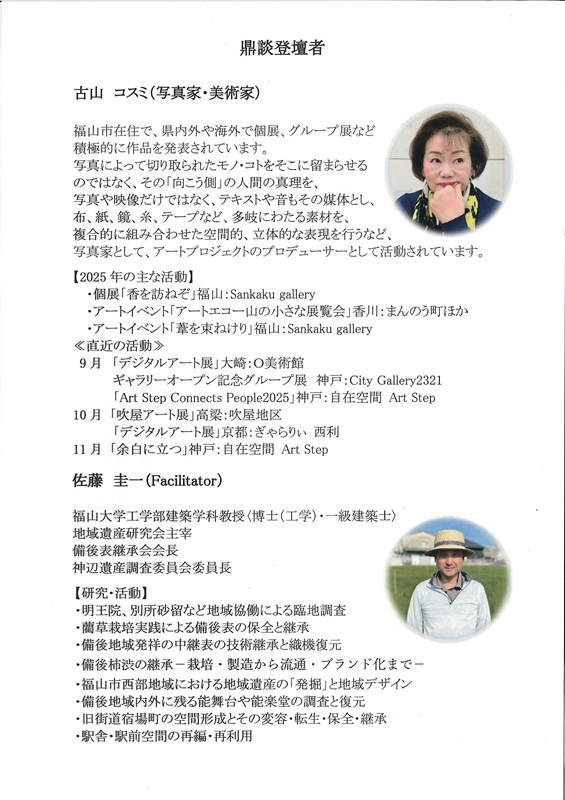 古山コスミ(写真家・美術家) × 野田正明(現代美術家) × 佐藤 圭一(福山大学建築学科教授)