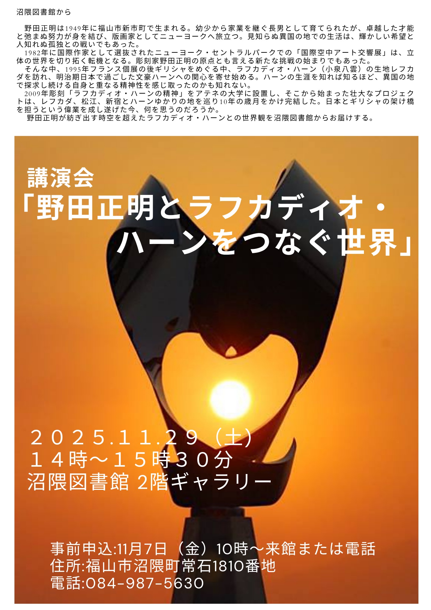 〇講演会「野田正明とラフカディオ・ハーンをつなぐ世界」